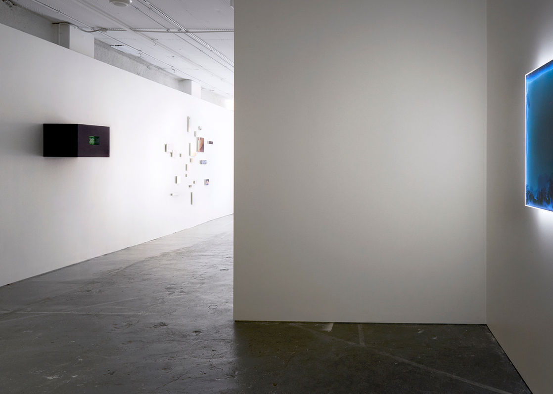 'At the Edge of Place sees a body of water transformed into a site of contamination. There is a stillness to this work: any flow or current has been cauterised, so the sickly green and black water sits in lethargic pools. This stasis is also apparent in Dahl’s construction of At the Edge of Place. Consisting of a selection of photographs of a human-made lake in Tasmania and its surrounding environment, Dahl has overlapped and merged each of these still frames together. The result is a video work that is less about motion and more about the subtle juxtapositions of multiple exposures. In focusing on a landscape marked by human intervention (refuse, decay and scars), Dahl highlights how ideas of ‘wilderness’ and ‘Nature’ exist only in our imagination'.